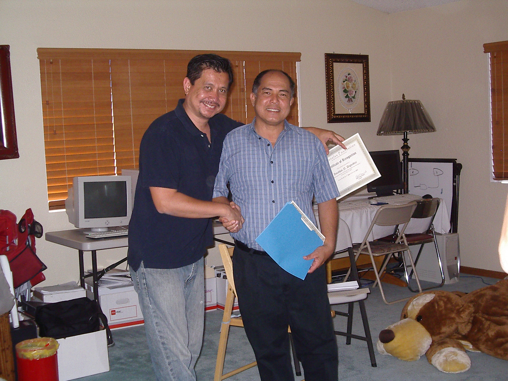On June 9, 2007, the Nacionales clan met at Uncle Eli and Auntie Joy's house where we feasted on awesome food and enjoyed each other's company. It was interesting to see that the counsins have grown up with their own families. Uncle Elijah announced that his school was finally approved by the local officials. Congratulations on his diligence. Furthermore, Jasper and Kristin are on their way to New Orleans, LA where Jasper will be entering the Coast Guard. This is a huge step for them and we will pray that God will bless you in your new home. If that is not enough, Jon and Ruth added two-week old Isaiah to their family. What a cutie pie! Wonderful news of Rosemary's pregnancy spread and we were all elated for them. We pray for a safe pregnancy. As you know, a Nacionales get-together is not complete without games. The men played against the women in a competitive game of pictionary. The men won but they did CHEAT, espcially that Jasper who added noises to his drawings NOT just once but TWICE! They also used Filipino words...who do they think we are...Filipinos?