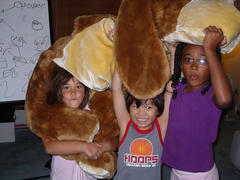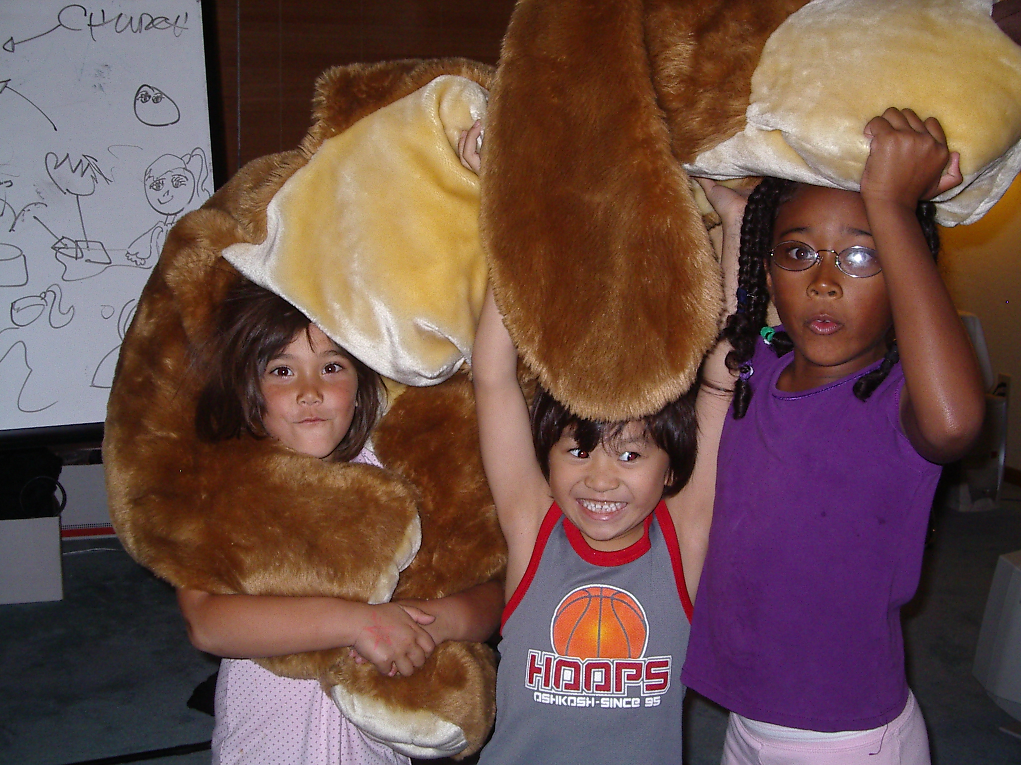 Taylor, Seth and Emmelie wrestling with a stuffed dog!
